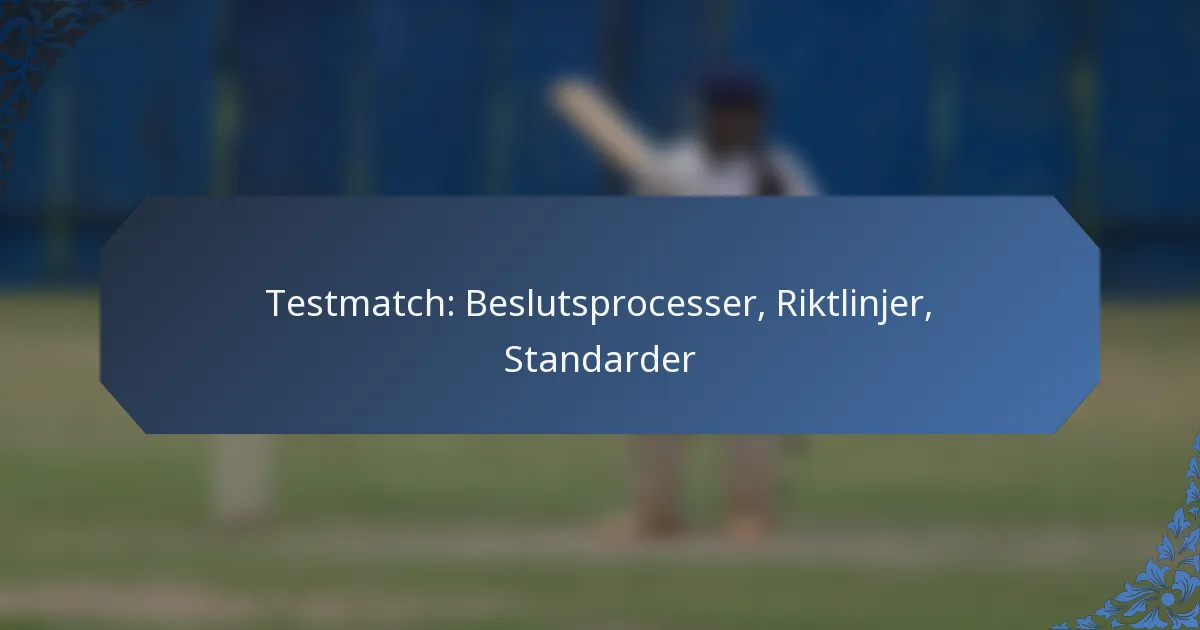 I testmatcher är viktiga beslutsprocesser avgörande för kaptenen, tränarstaben och spelarna, eftersom de förlitar sig på prestationsdata och situationsfaktorer för att fatta strategiska val som kan påverka matchens utgång. Officiella riktlinjer och standarder reglerar detta traditionella format av cricket, vilket säkerställer rättvist spel, spelarkondukt och spelets integritet samtidigt som det särskiljer sig från begränsade overs-format.